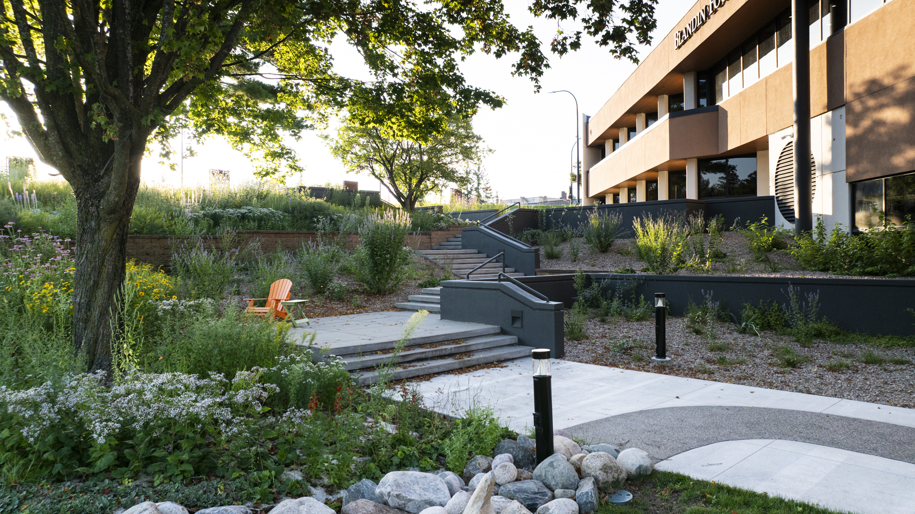 The old Blandin Foundation building was outdated and needed a revamp to help build stronger relationships and make guests more comfortable visiting. Nor-Son Construction did interior demolition followed by new flooring, drywall, steel stud framing, and trim work. We also installed new cabinetry and did exterior site work including new concrete and landscaping. We worked with Widseth for the Architecture, with whom we have a strong relationship. The Blandin Foundation is now modern, comfortable, and welcoming again.