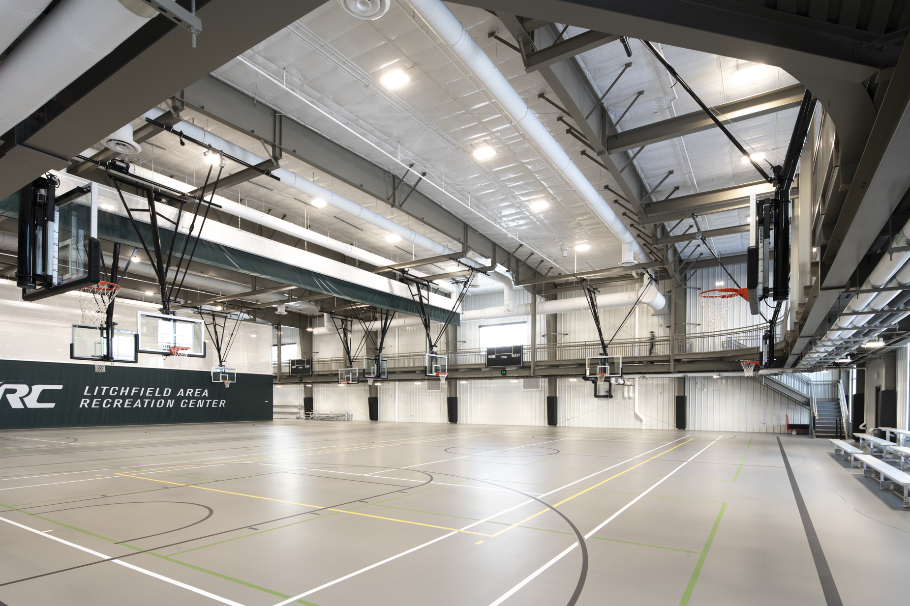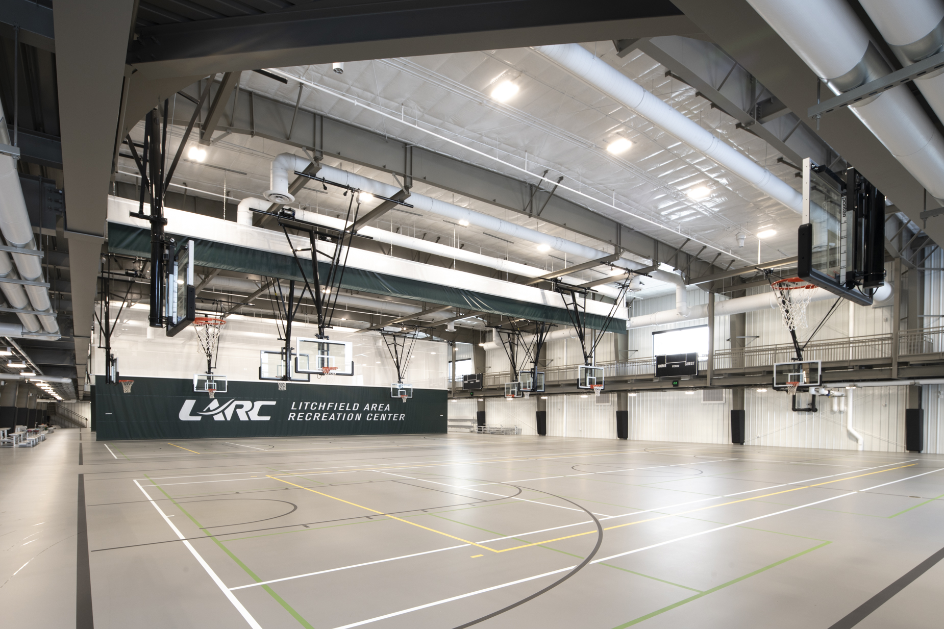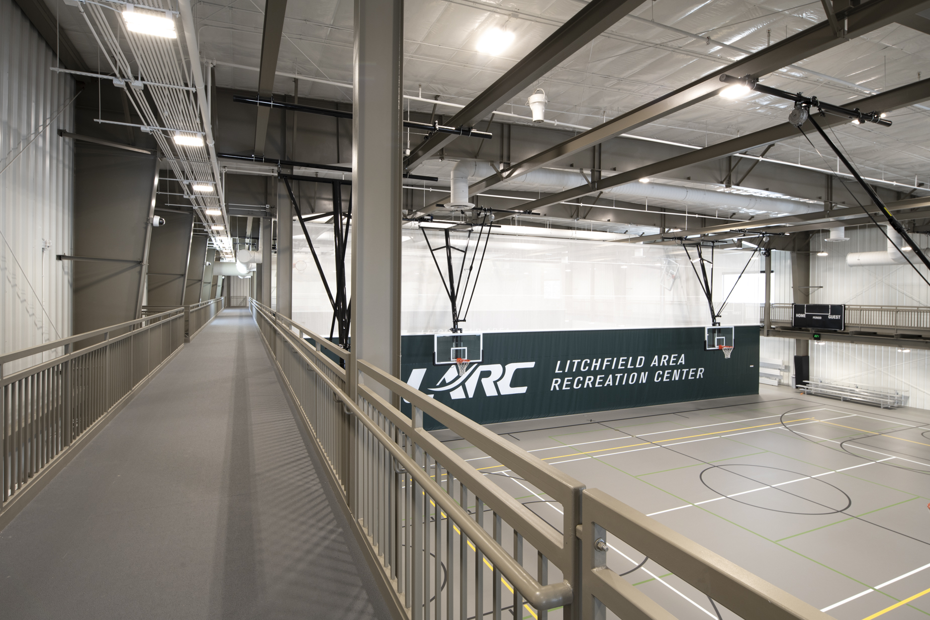 Located off Gilman Avenue, the Litchfield Area Recreation Center (LARC) includes a four-station multi-purpose fieldhouse, an elevated walking track, community rooms, family changing rooms, a fitness space, and additional support spaces. This new facility meets residents’ desires in providing a space for a wide range of community activities that will serve the region well for decades to come. Nor-Son Construction was the General Contractor for this rewarding job for the City of Litchfield working in recreation construction for government services.