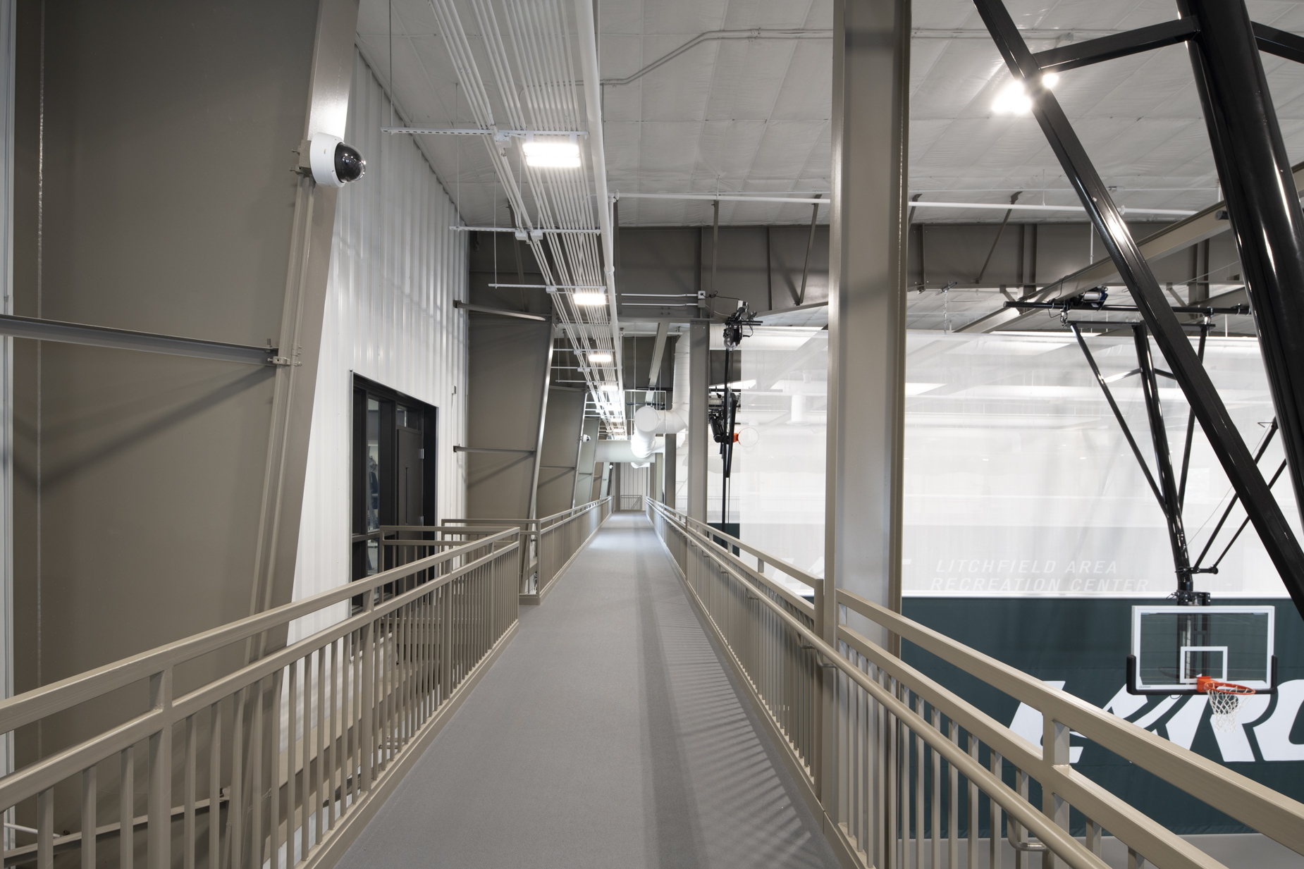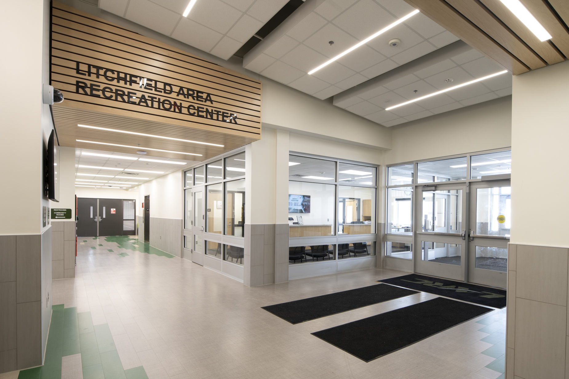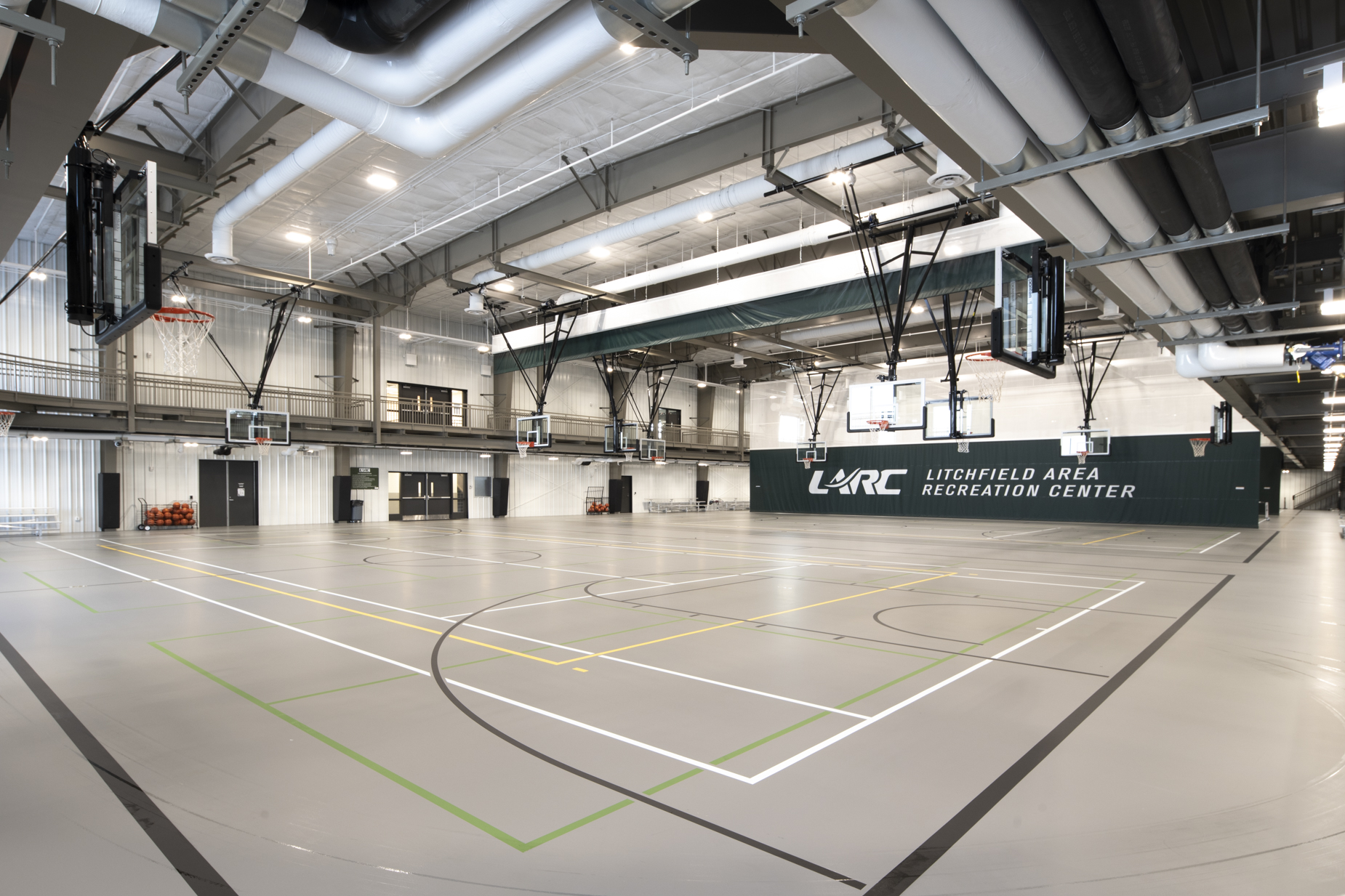 Located off Gilman Avenue, the Litchfield Area Recreation Center (LARC) includes a four-station multi-purpose fieldhouse, an elevated walking track, community rooms, family changing rooms, a fitness space, and additional support spaces. This new facility meets residents’ desires in providing a space for a wide range of community activities that will serve the region well for decades to come. Nor-Son Construction was the General Contractor for this rewarding job for the City of Litchfield working in recreation construction for government services.